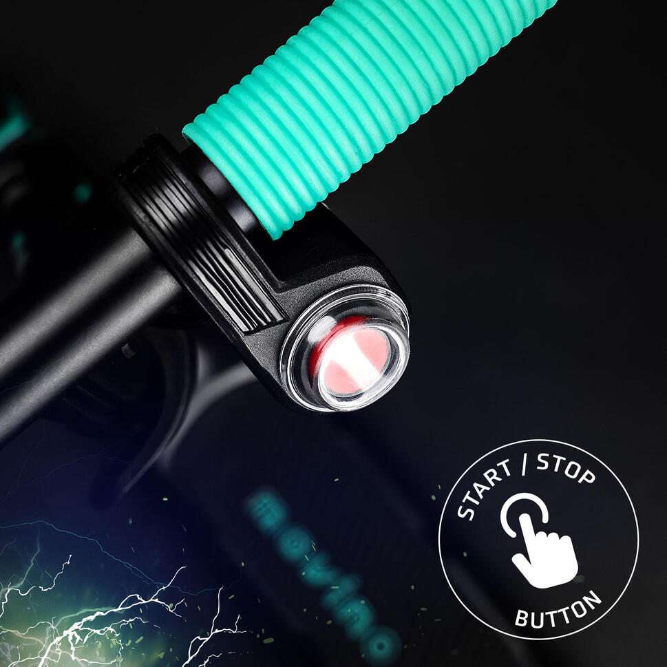 Un bouton START/STOP est placé sur le guidon, permettant de démarrer et d'arrêter l'appareil facilement, sans distraction ni perte de contrôle du véhicule. L'utilisation de la trottinette est facile et intuitive. Avec la trottinette E-GO, l'enfant peut rouler à une vitesse choisie et sécurisée – 6 ou 10 km/h.