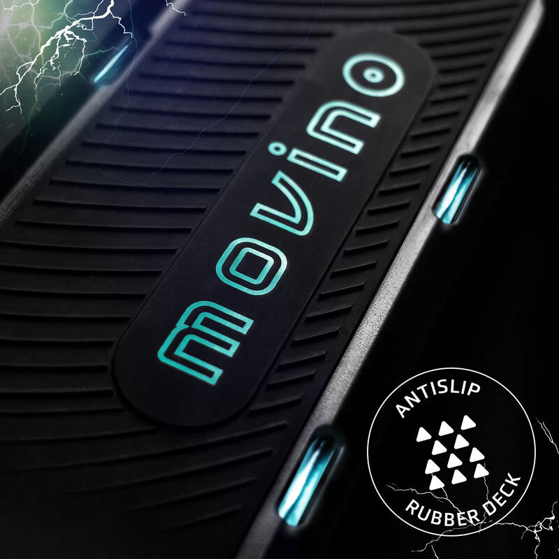 La plateforme de l'E-GO est recouverte de caoutchouc de haute qualité. La couche antidérapante assure que l'enfant se tient toujours de manière stable et sûre, même lorsque la trottinette est mouillée. Les LED le long des côtés éclairent le véhicule, le rendant bien visible, même par mauvais temps.